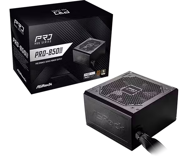 ASRock PSU 850W Bronze, Pro, 80PLUS, 120mm fan, ATX 3.1, PCIe 5.1