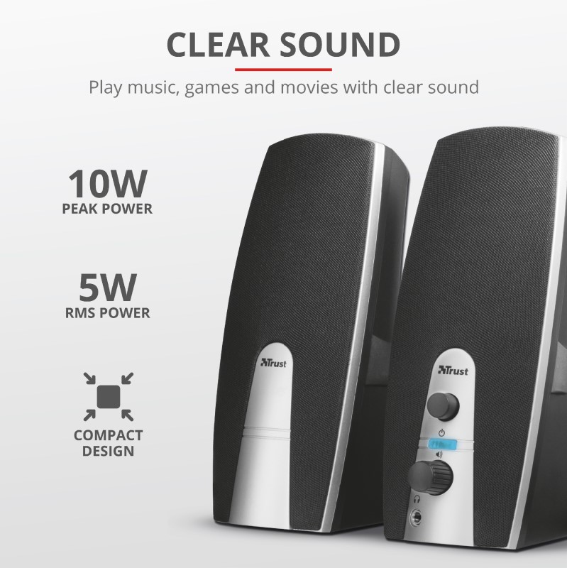 Trust Mila 2.0, 16697; Kompaktni set stereo zvučnika s RMS izlazom od 5 W (maksimalna snaga 10 W), USB napajanje