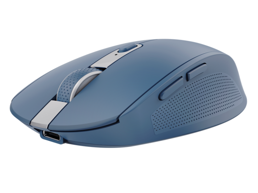 Trust OZAA compact wireless miš, optički senzor, 800-3200 dpi, wireless, USB-A, USB-C, RF 2.4GHz bluetooth, 6 tipki, punjiva baterija, plavi